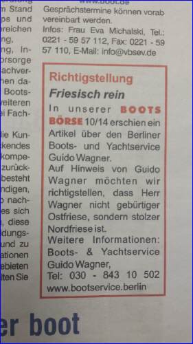 Ein redaktioneller Beitrag über Winterlager in der Ausgabe "Boots Börse" und "Segler Zeitung" 10.2014